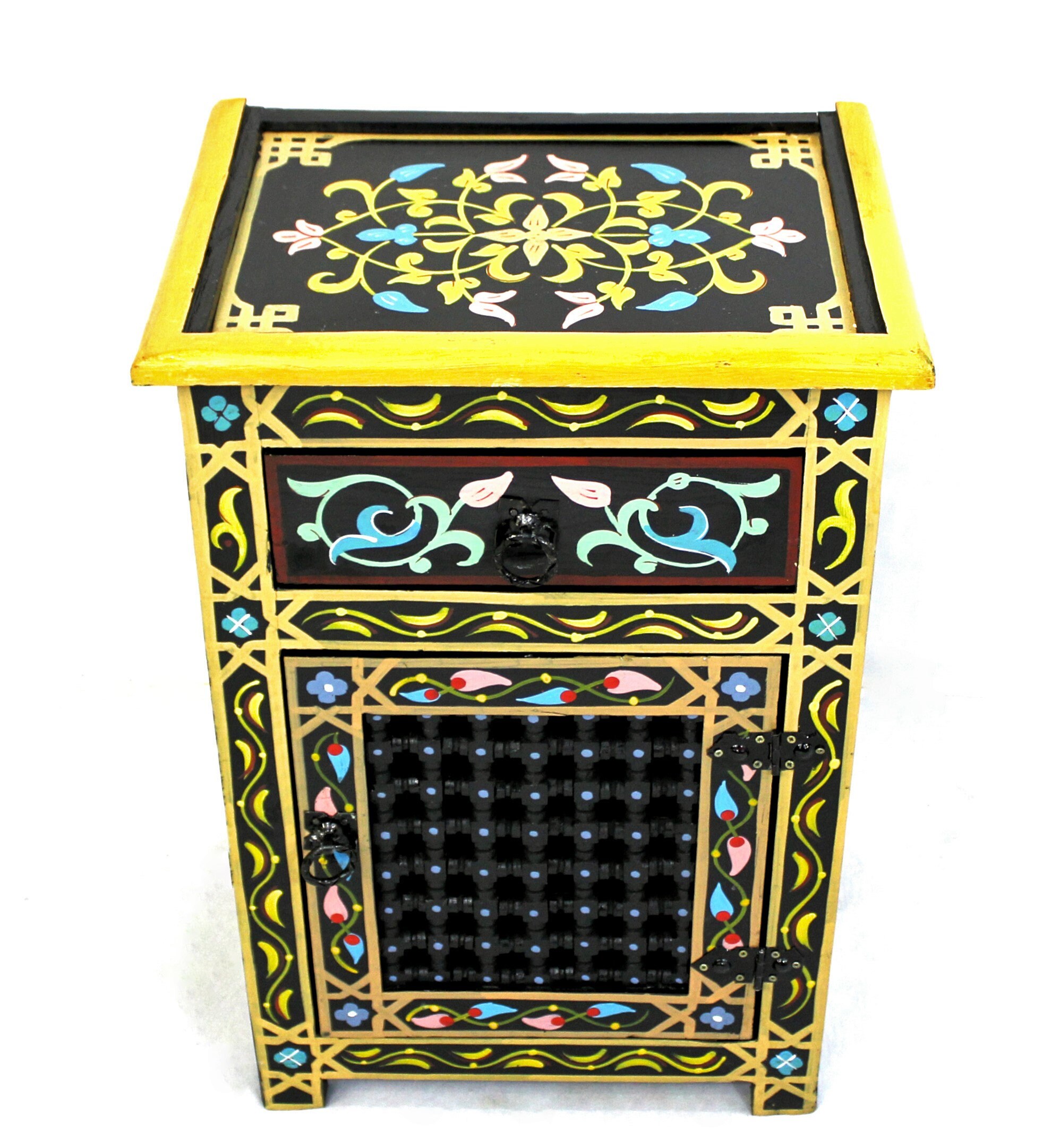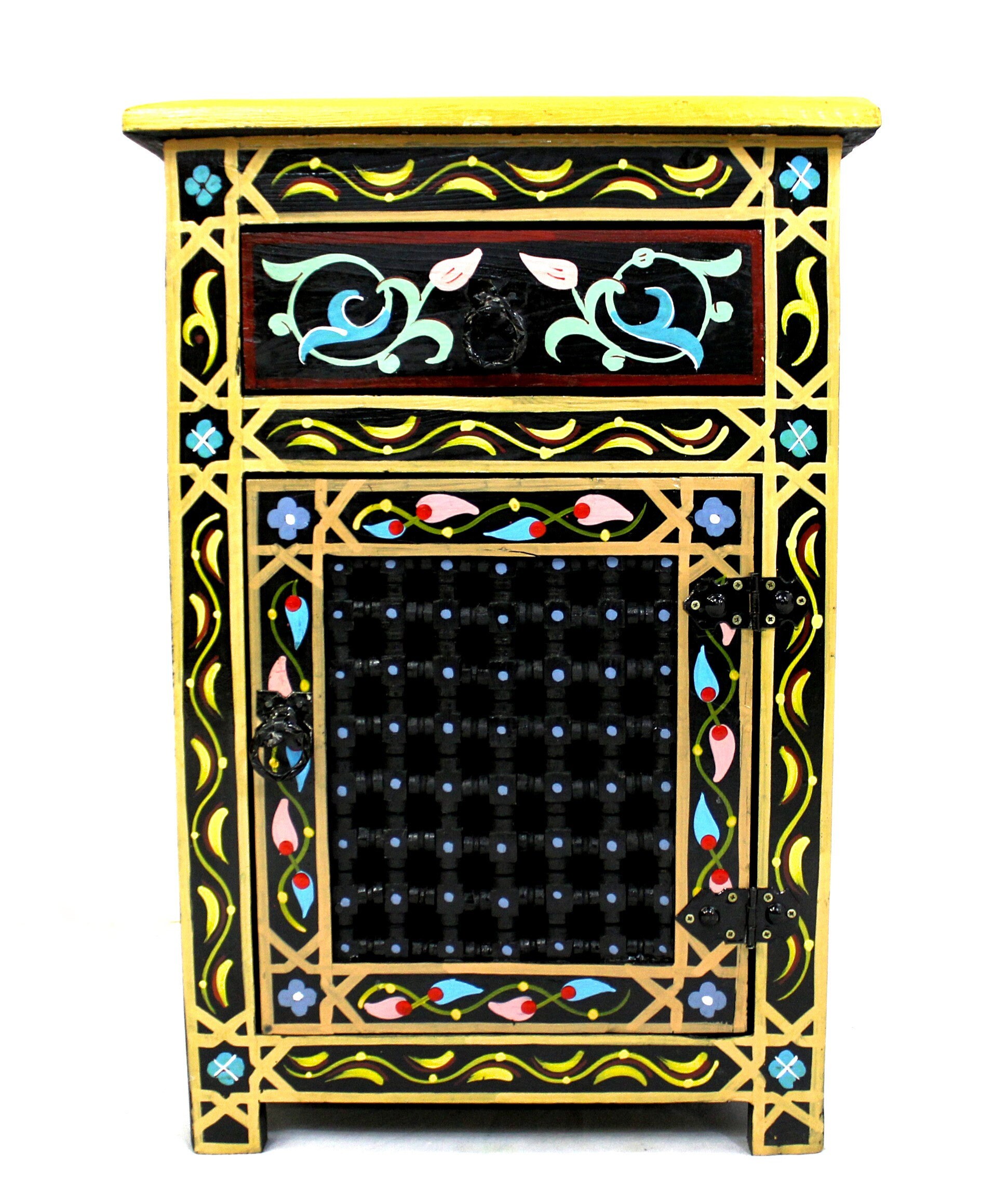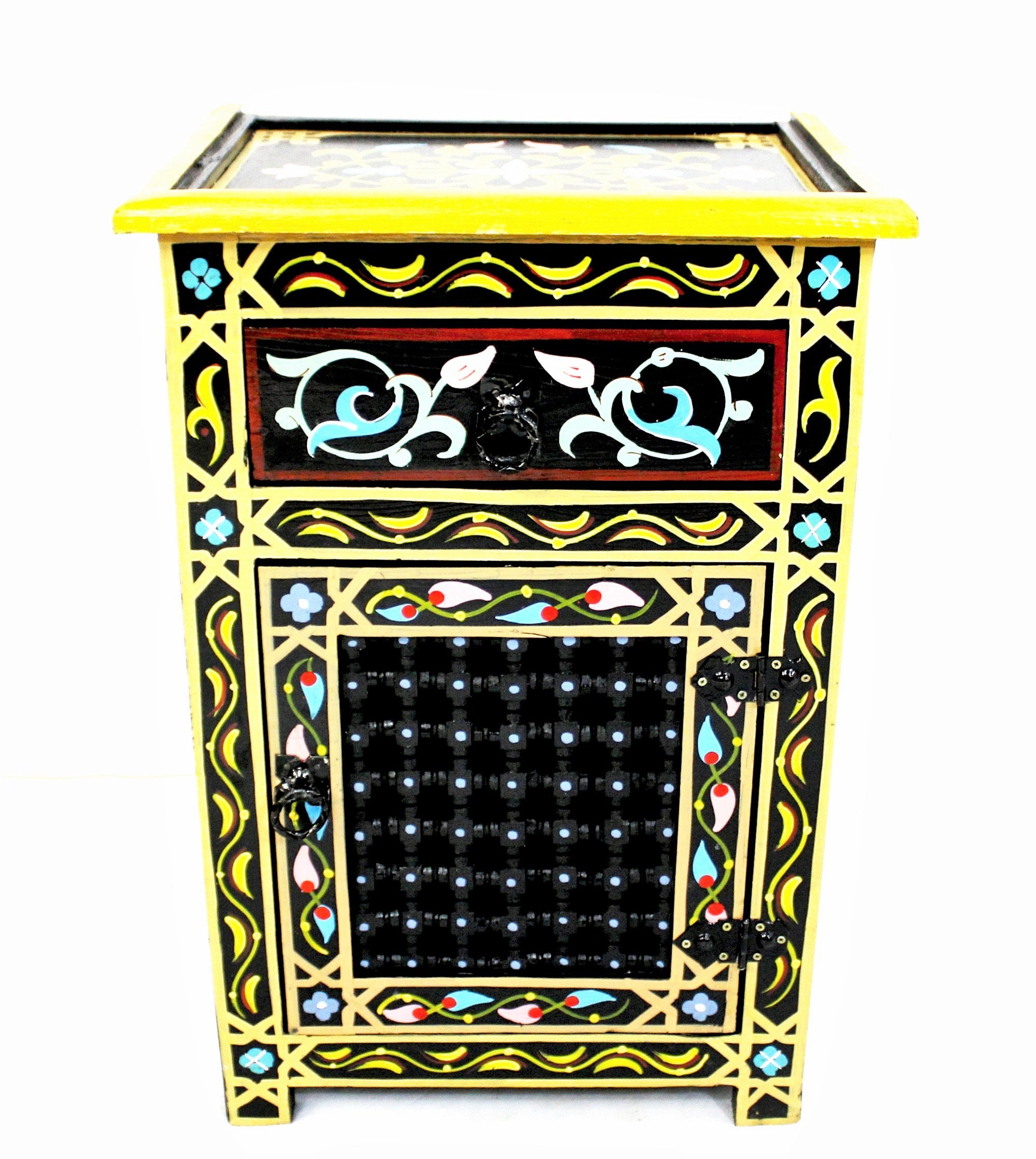 This elegant Moroccan nightstand is hand-painted using traditional tools and techniques by ace artisans from Marrakech. The vibrant colors will add glory and charm to any room, and what most important, will put a warm smile on your face.