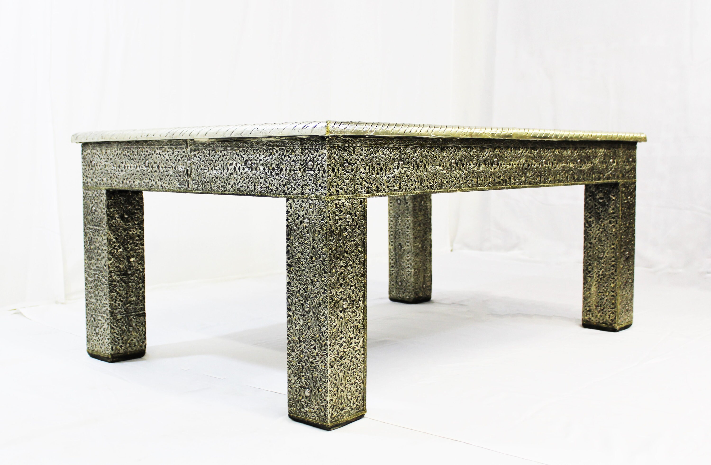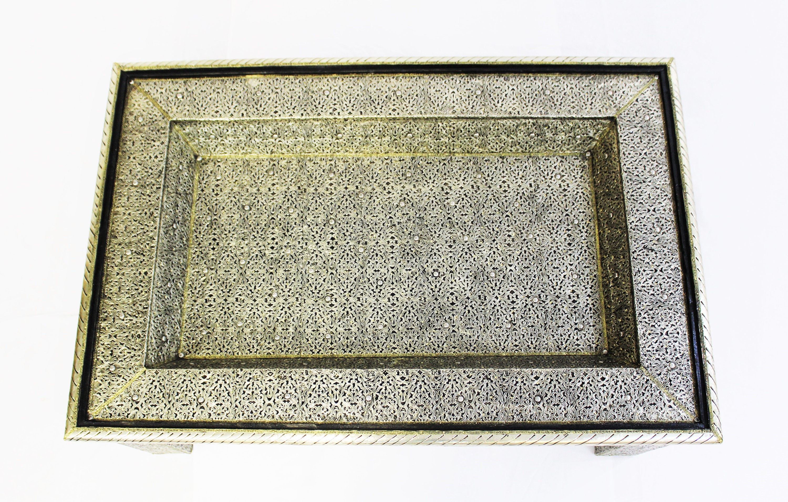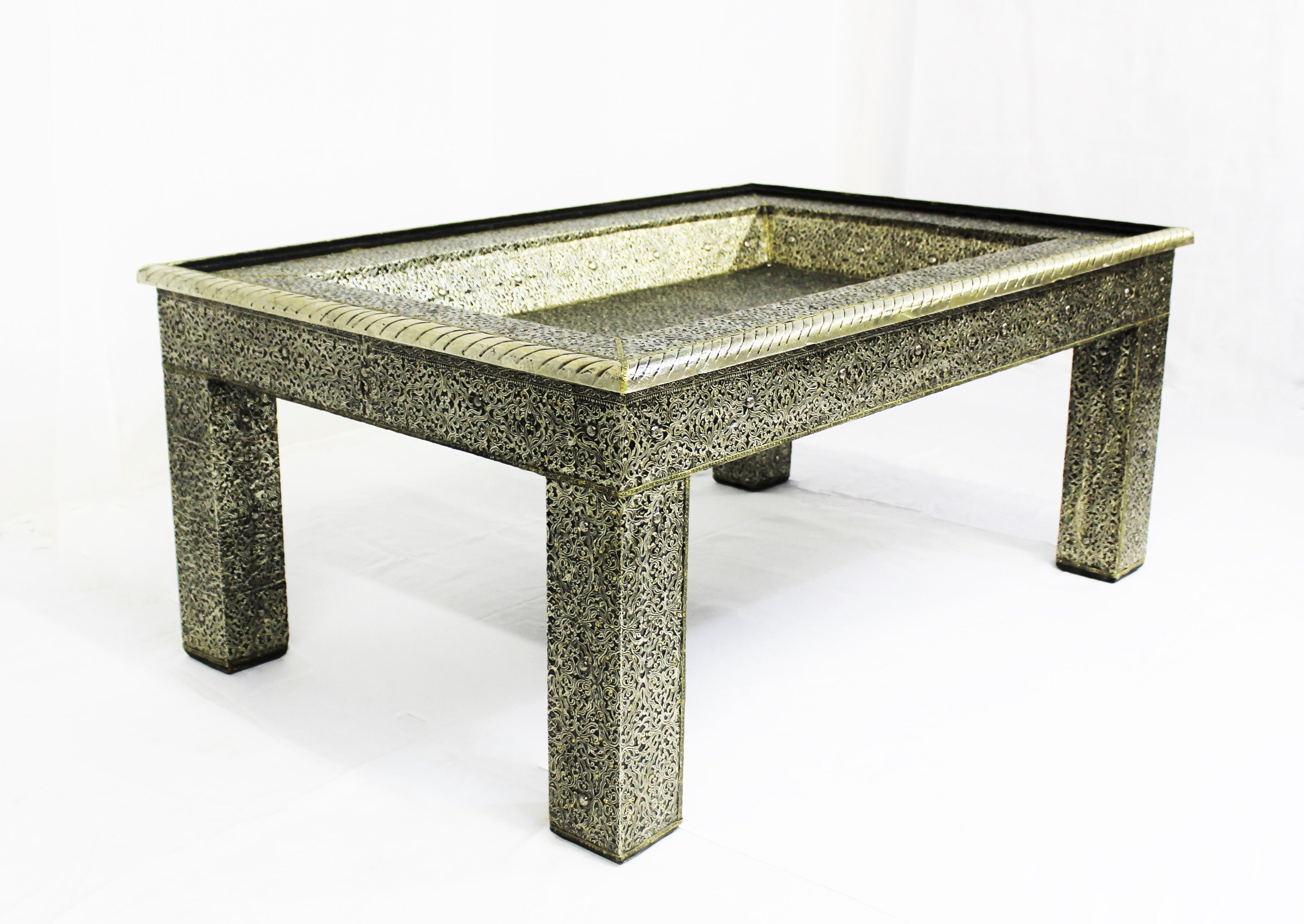 This is a beautiful authentic piece. Hand-crafted in Morocco, using fine quality materials, like wood and metal, and incredible imagination of artisans. The wooden frame is dressed in meticulously hand-hammered metal. The design is 3-dimensional.