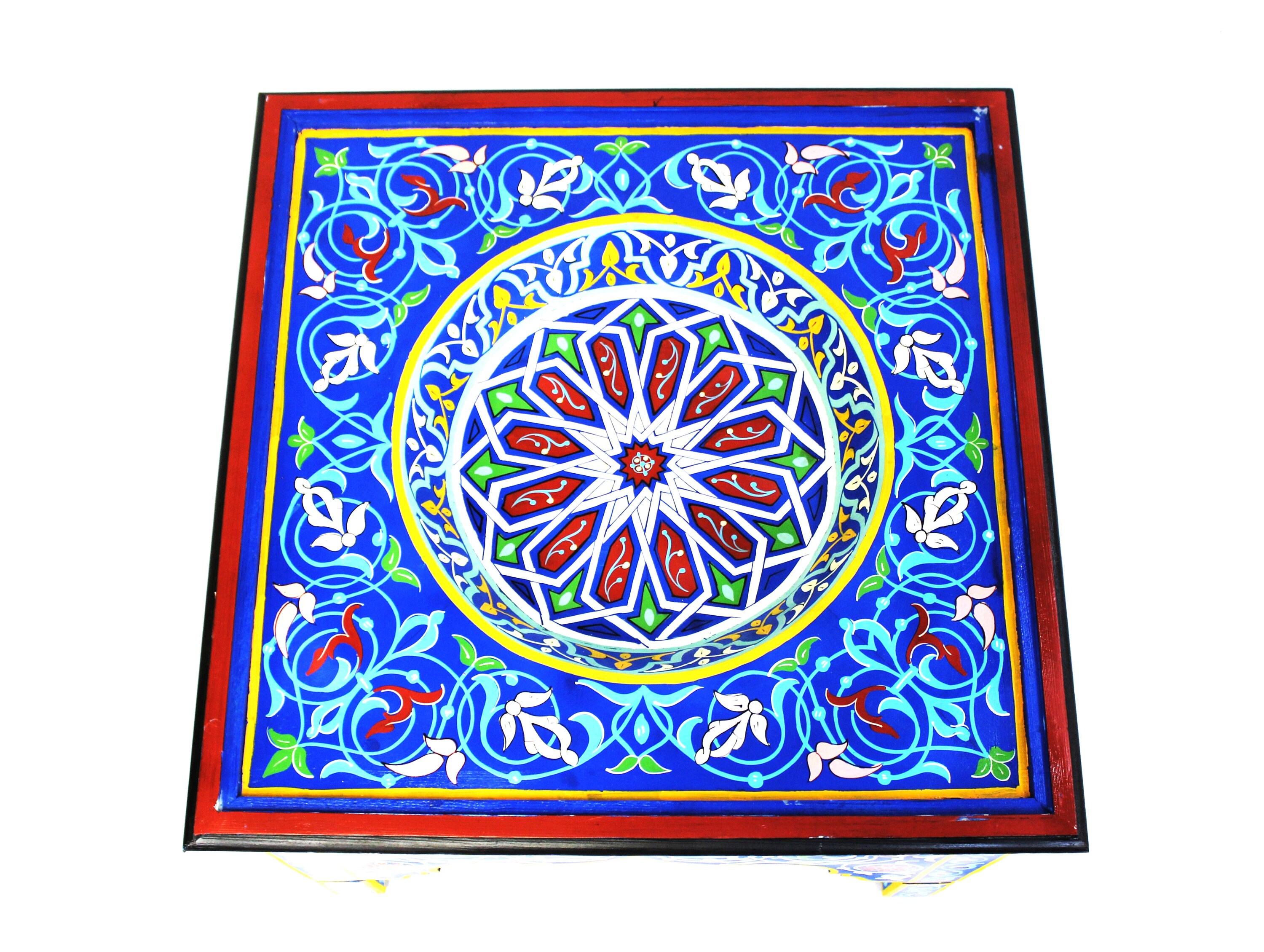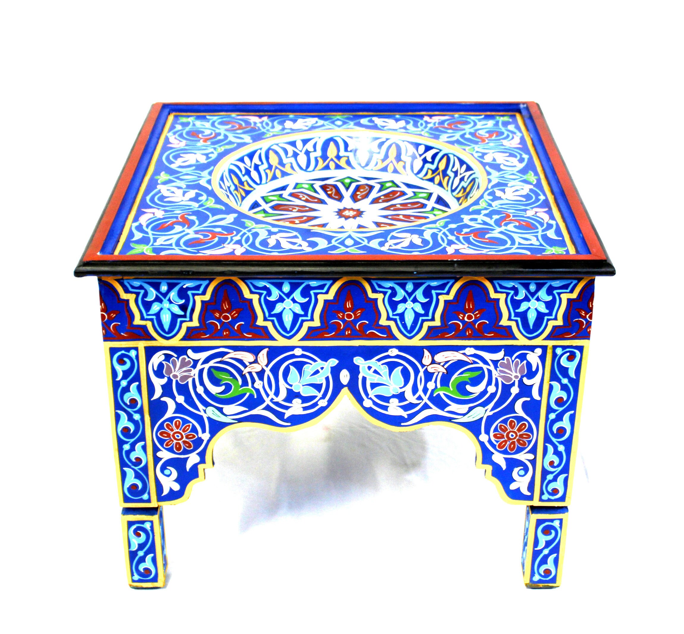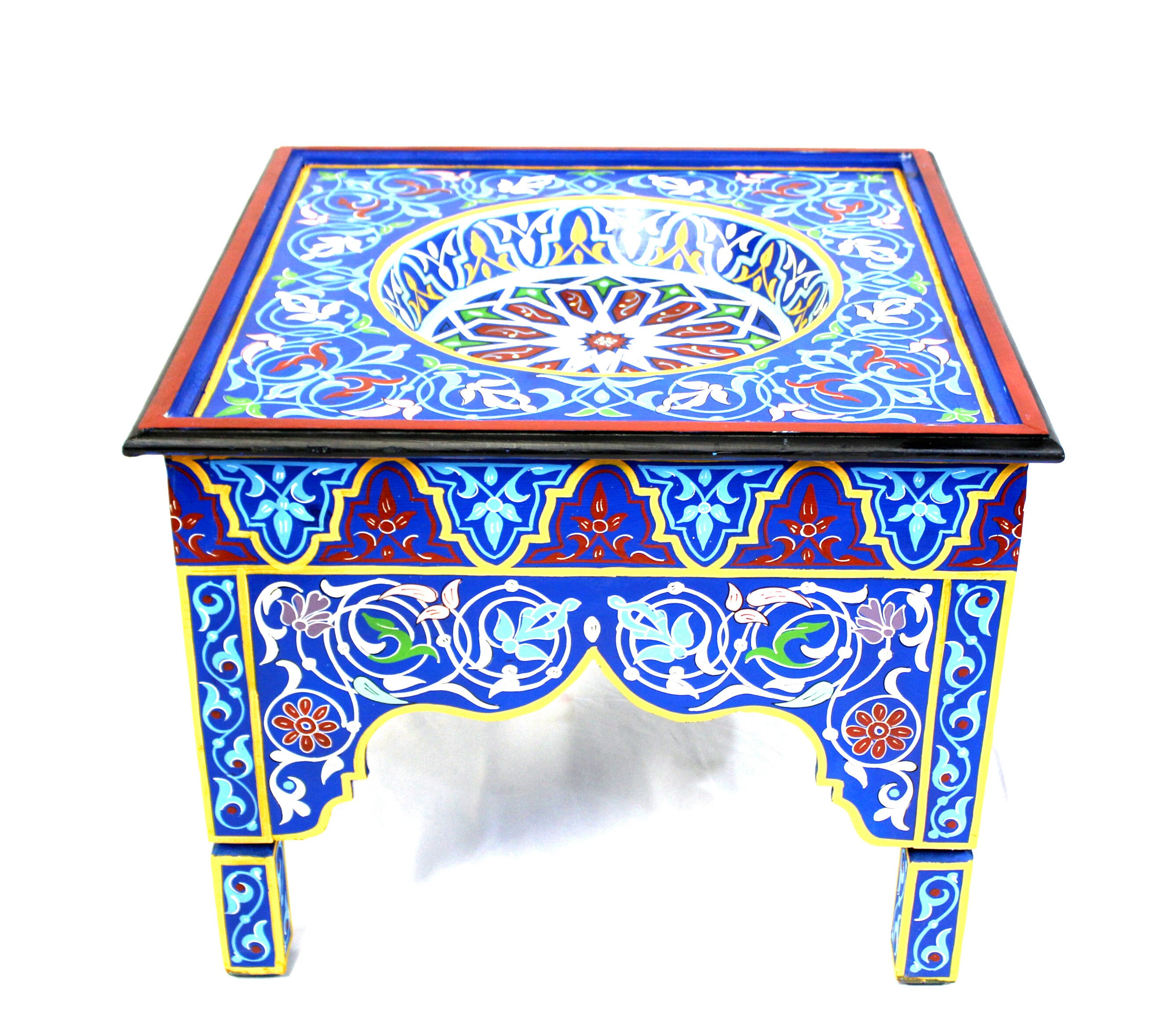 This elegant Moroccan table is hand-painted using traditional tools and techniques by ace artisans from Marrakech. The vibrant colors will add glory and charm to any room, and what most important, will put a warm smile on your face.