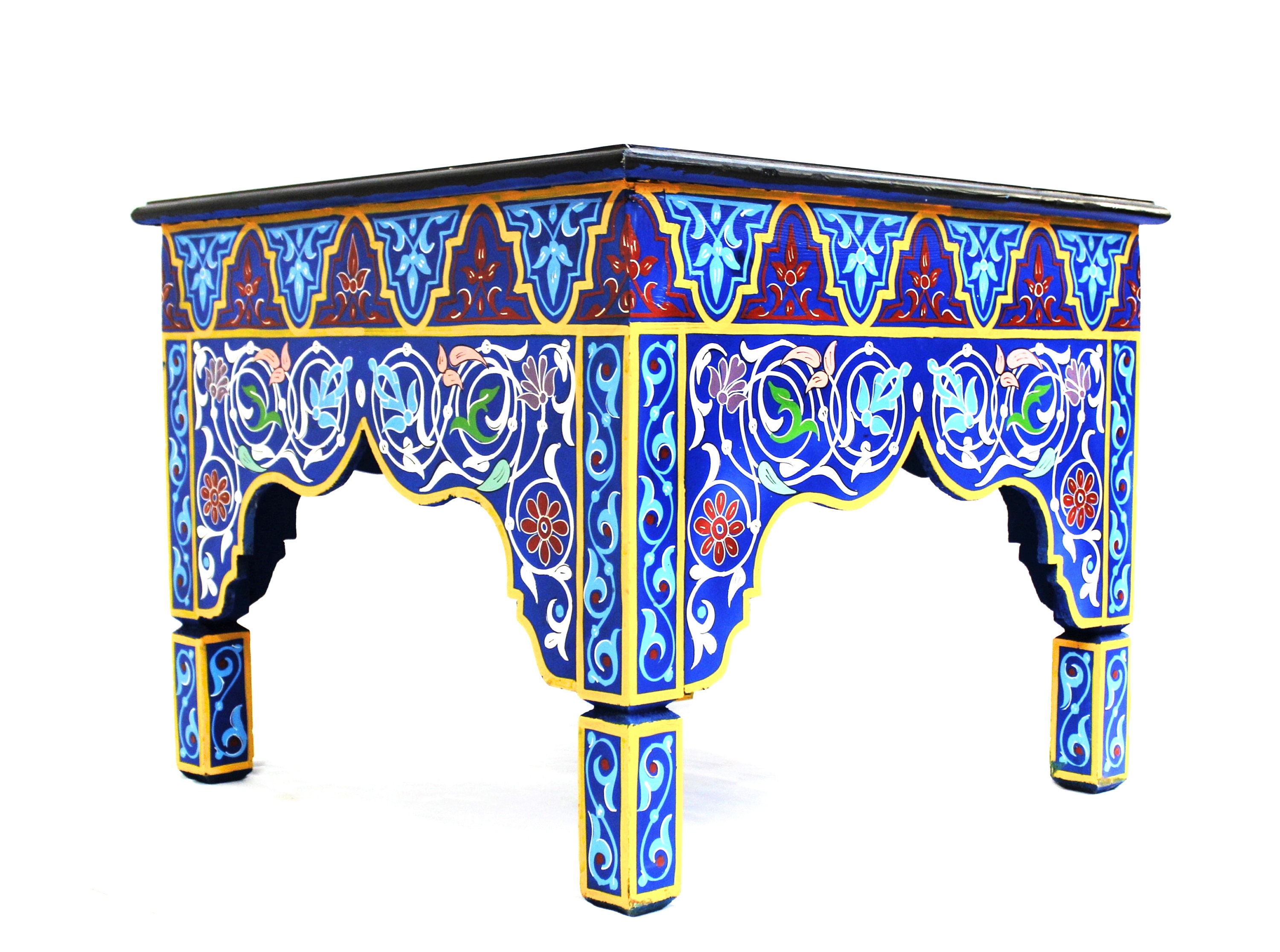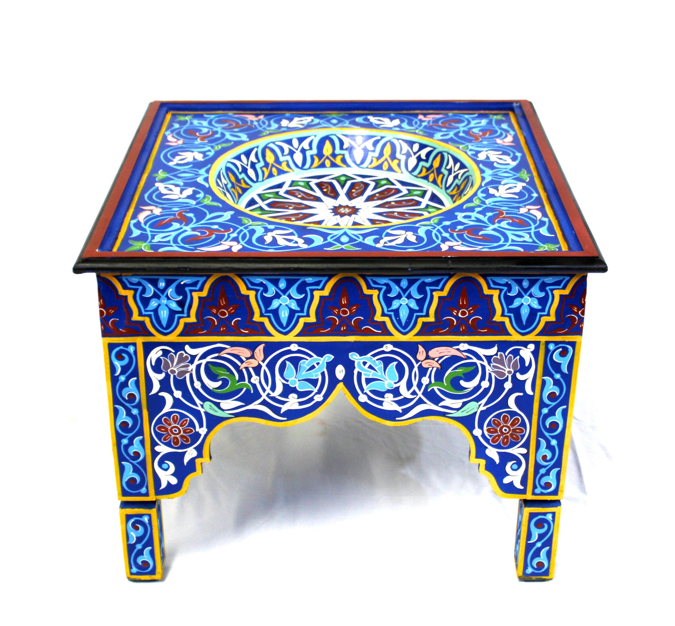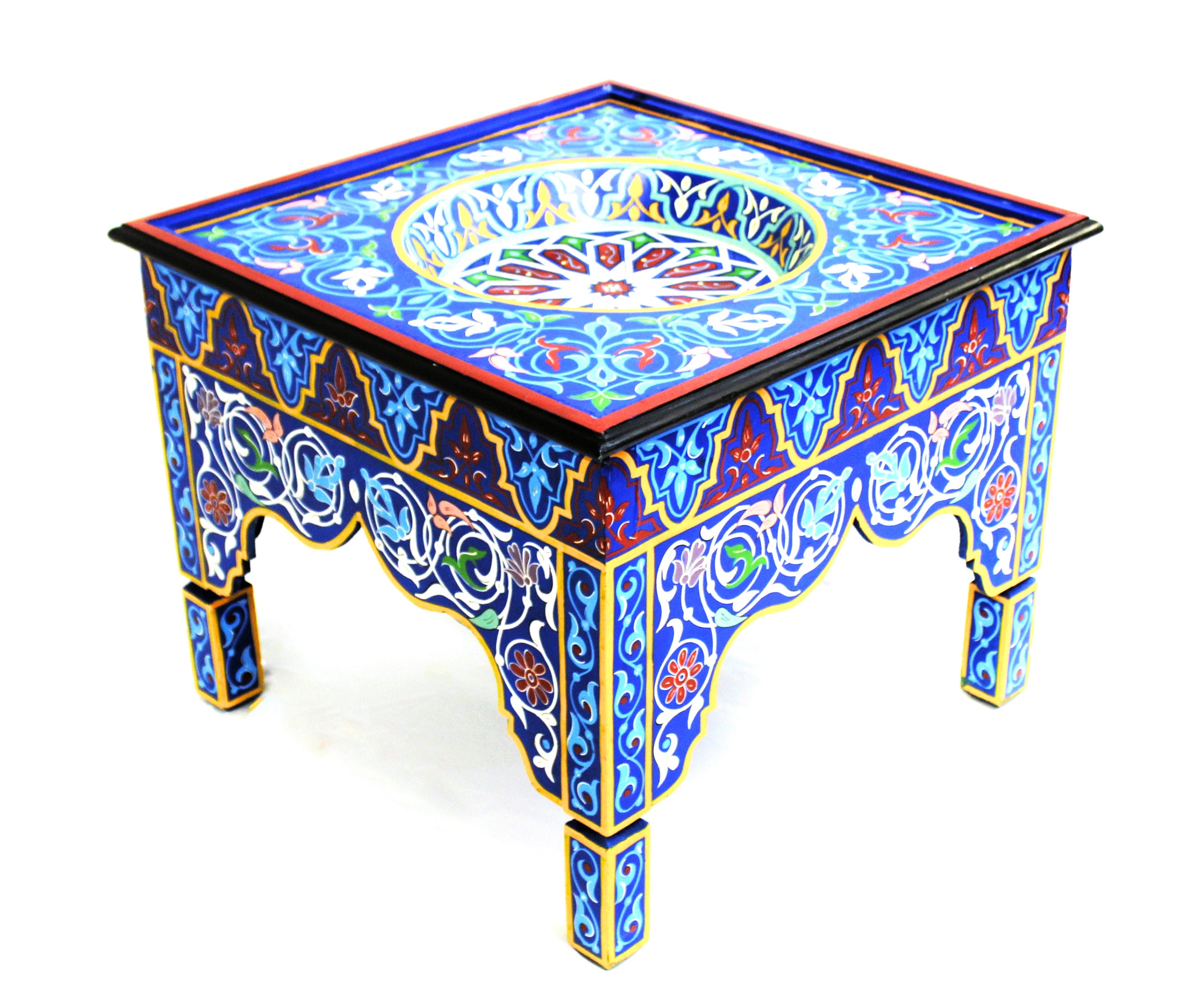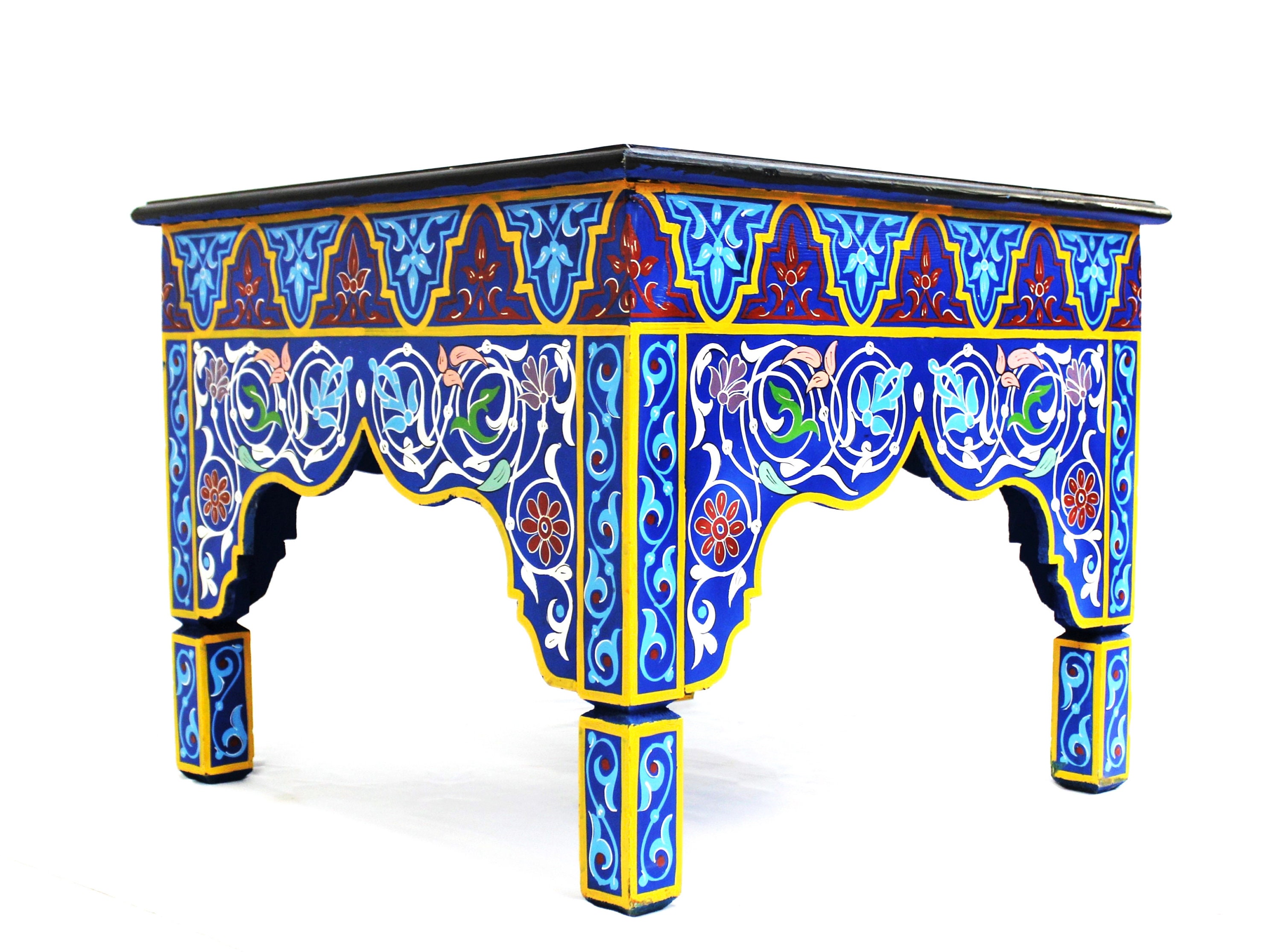 This elegant Moroccan table is hand-painted using traditional tools and techniques by ace artisans from Marrakech. The vibrant colors will add glory and charm to any room, and what most important, will put a warm smile on your face.
