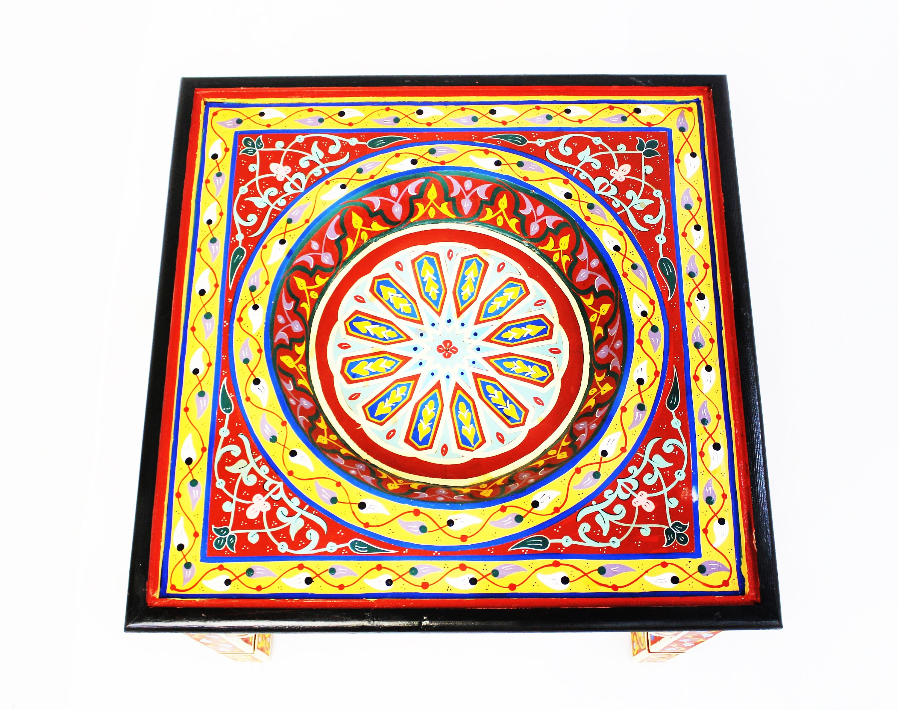 This elegant Moroccan table is hand-painted using traditional tools and techniques by ace artisans from Marrakech. The vibrant colors will add glory and charm to any room, and what most important, will put a warm smile on your face.