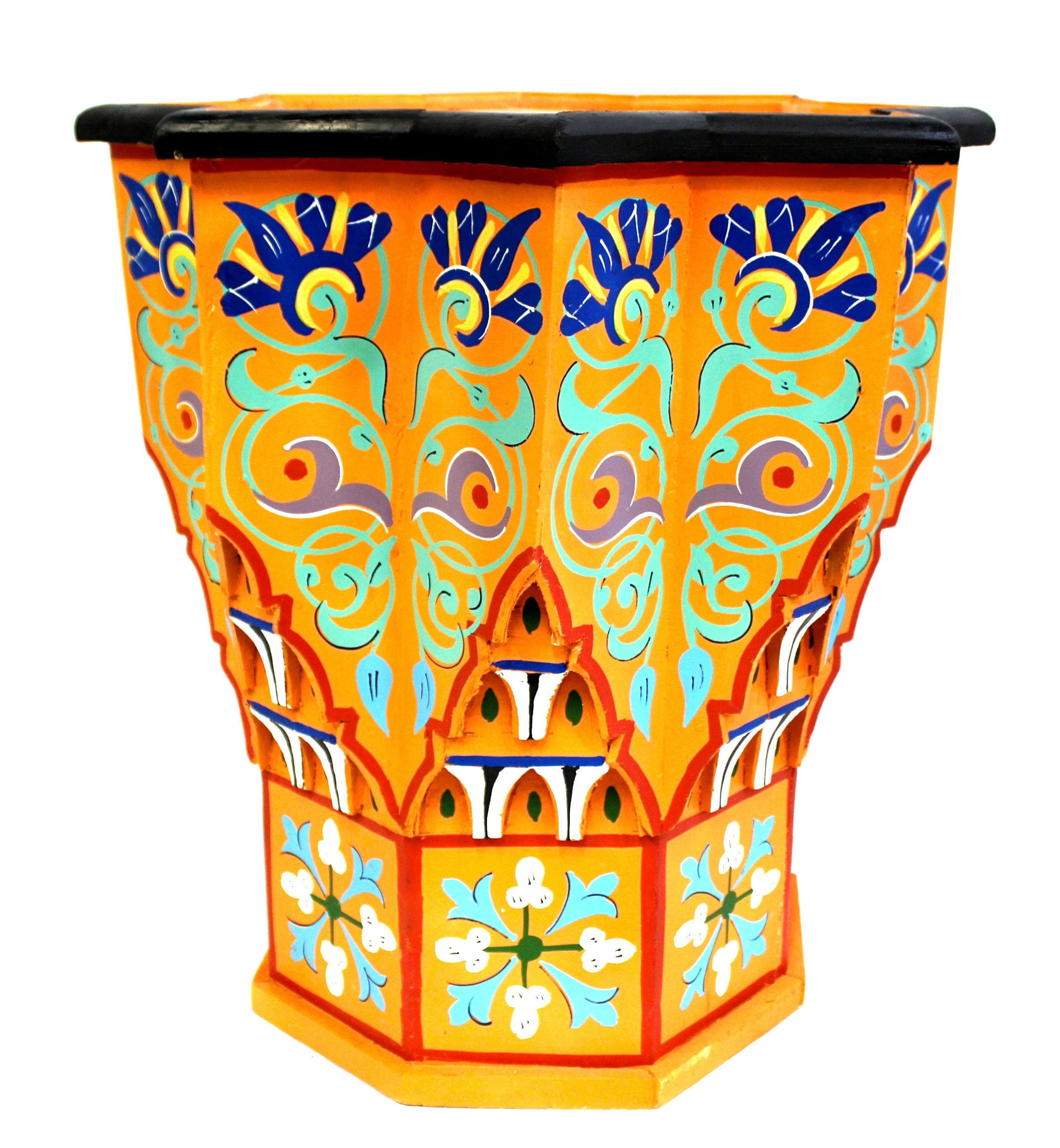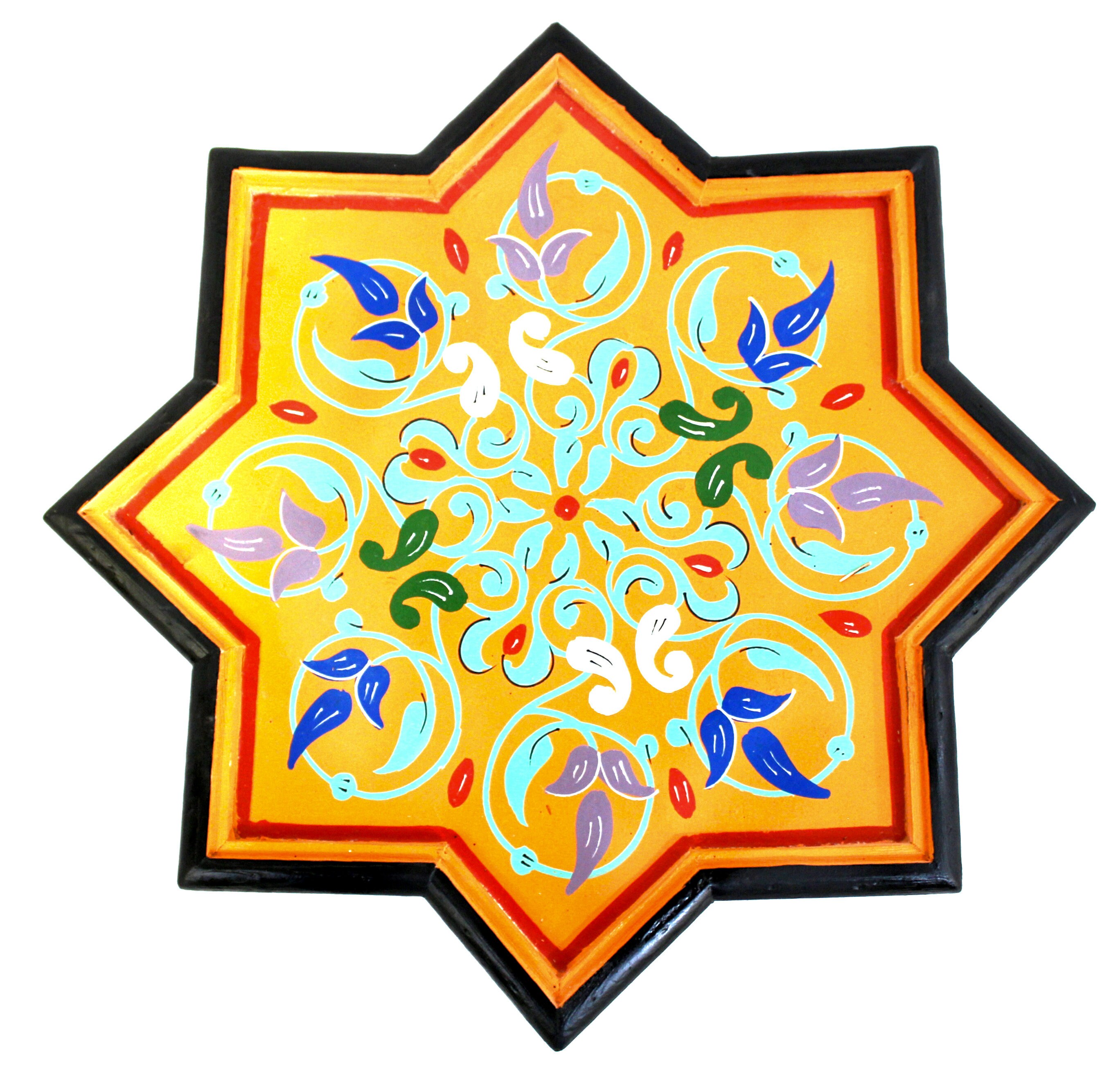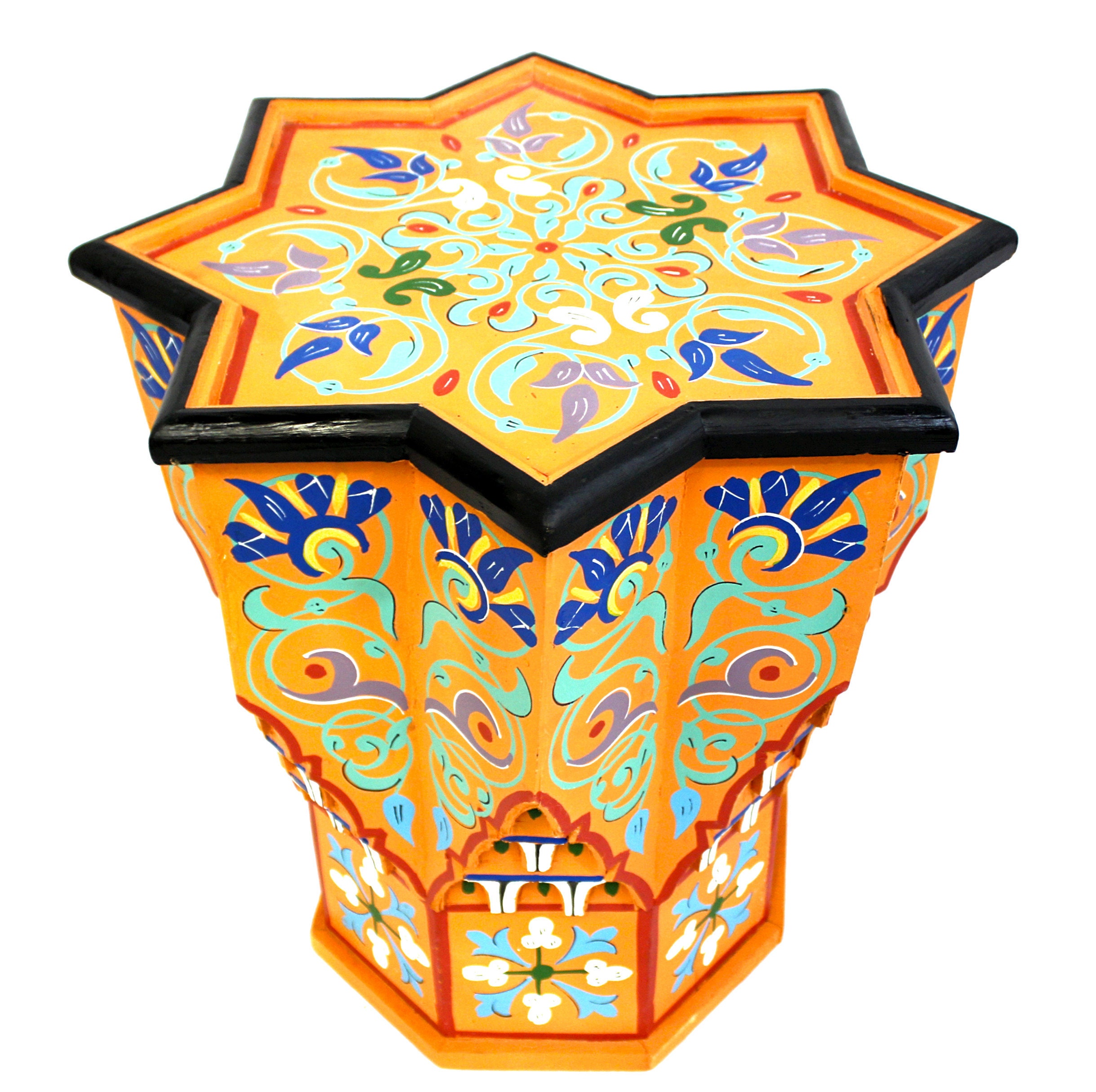 This is a beautiful authentic piece. Hand-crafted in Morocco, using fine quality materials and incredible imagination of artisans. The table is hand-painted. It's made in the shape of the eight-point star, a symbol of life in traditional Moorish designs. It's a perfect side table that will add a special charm to your room and put a warm smile on your face.