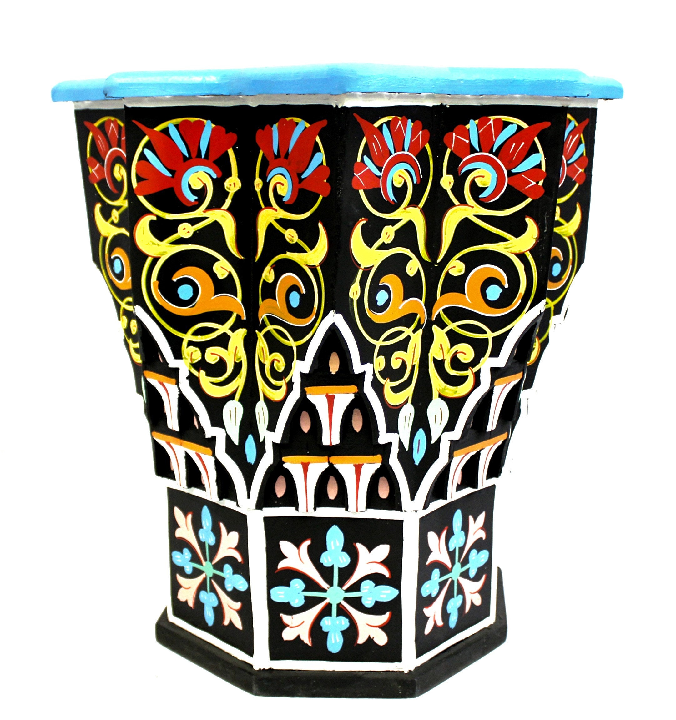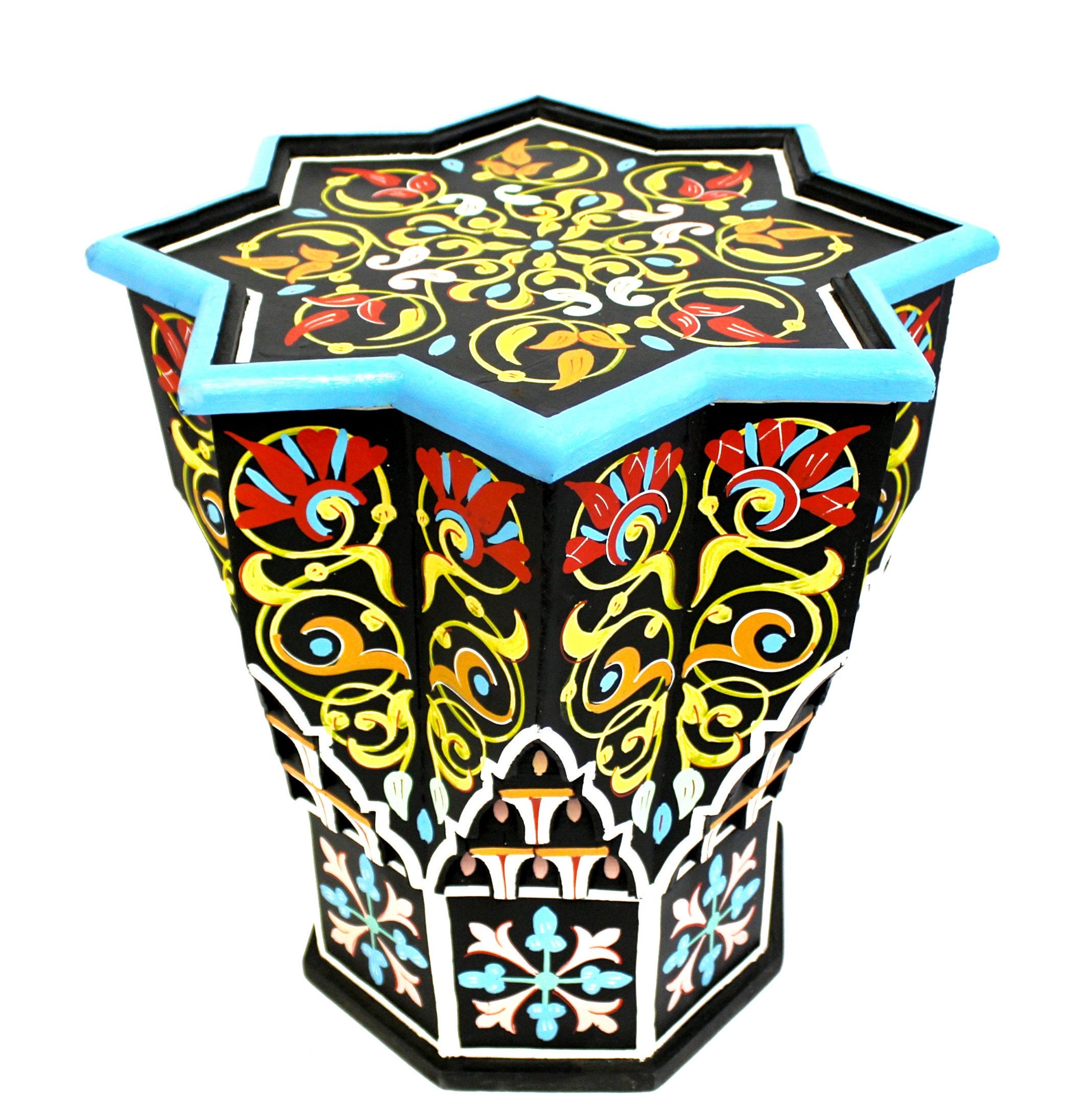This is a beautiful authentic piece. Hand-crafted in Morocco, using fine quality materials and incredible imagination of artisans. The table is hand-painted. It's made in the shape of the eight-point star, a symbol of life in traditional Moorish designs. It's a perfect side table that will add a special charm to your room and put a warm smile on your face.
