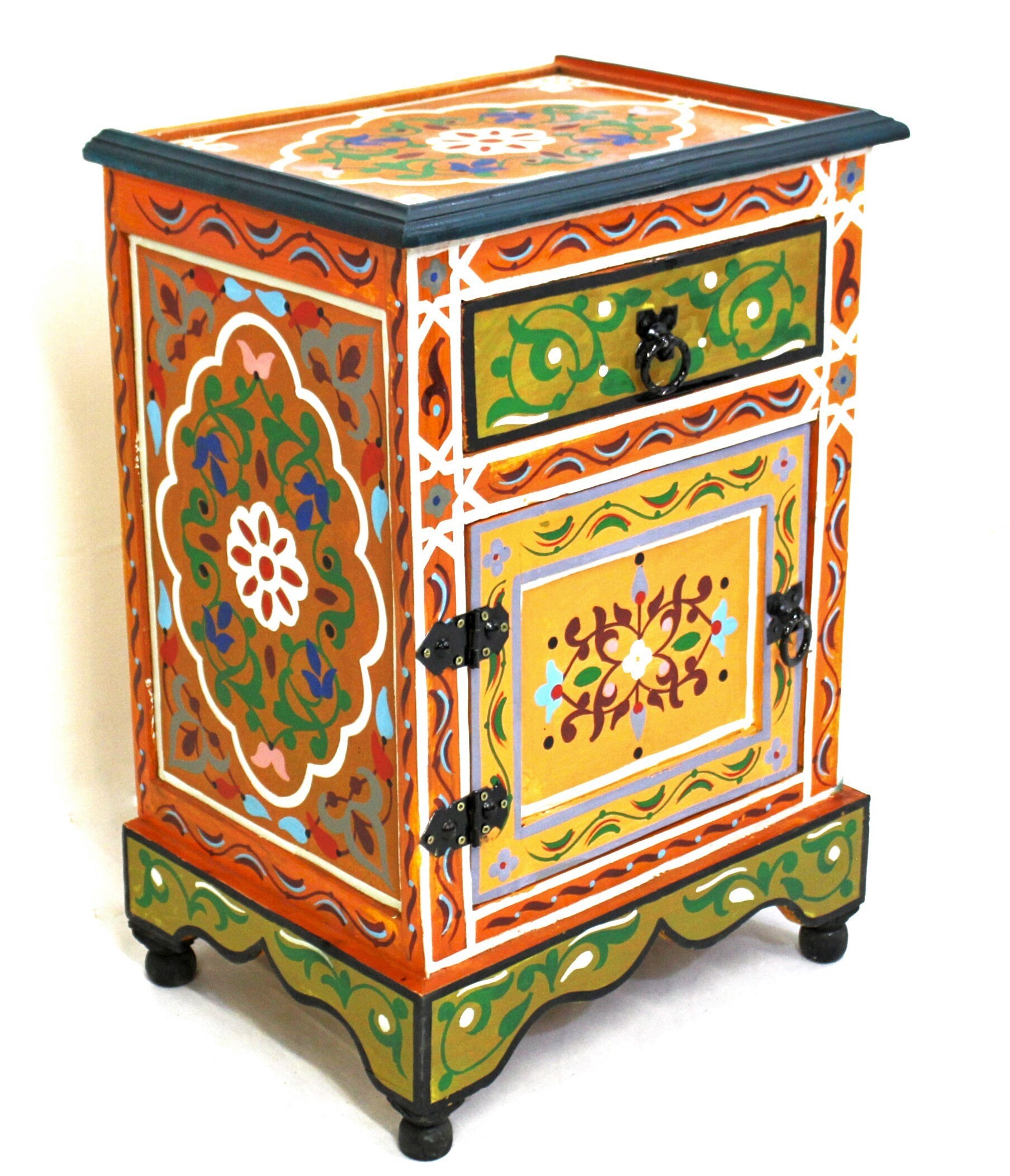 This elegant Moroccan nightstand is hand-painted using traditional tools and techniques by ace artisans from Marrakech. The vibrant colors will add glory and charm to any room, and what most important, will put a warm smile on your face.