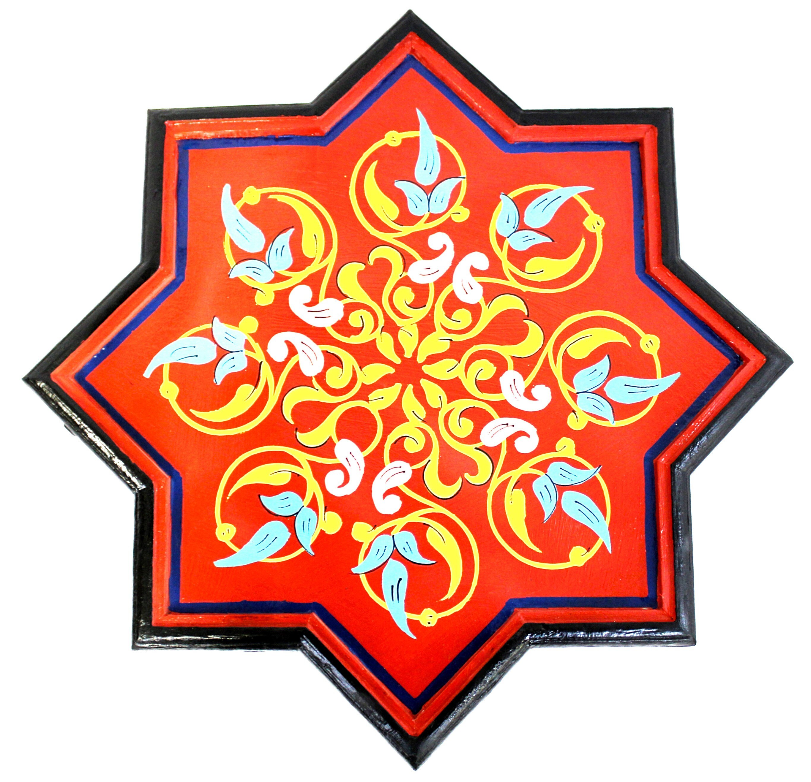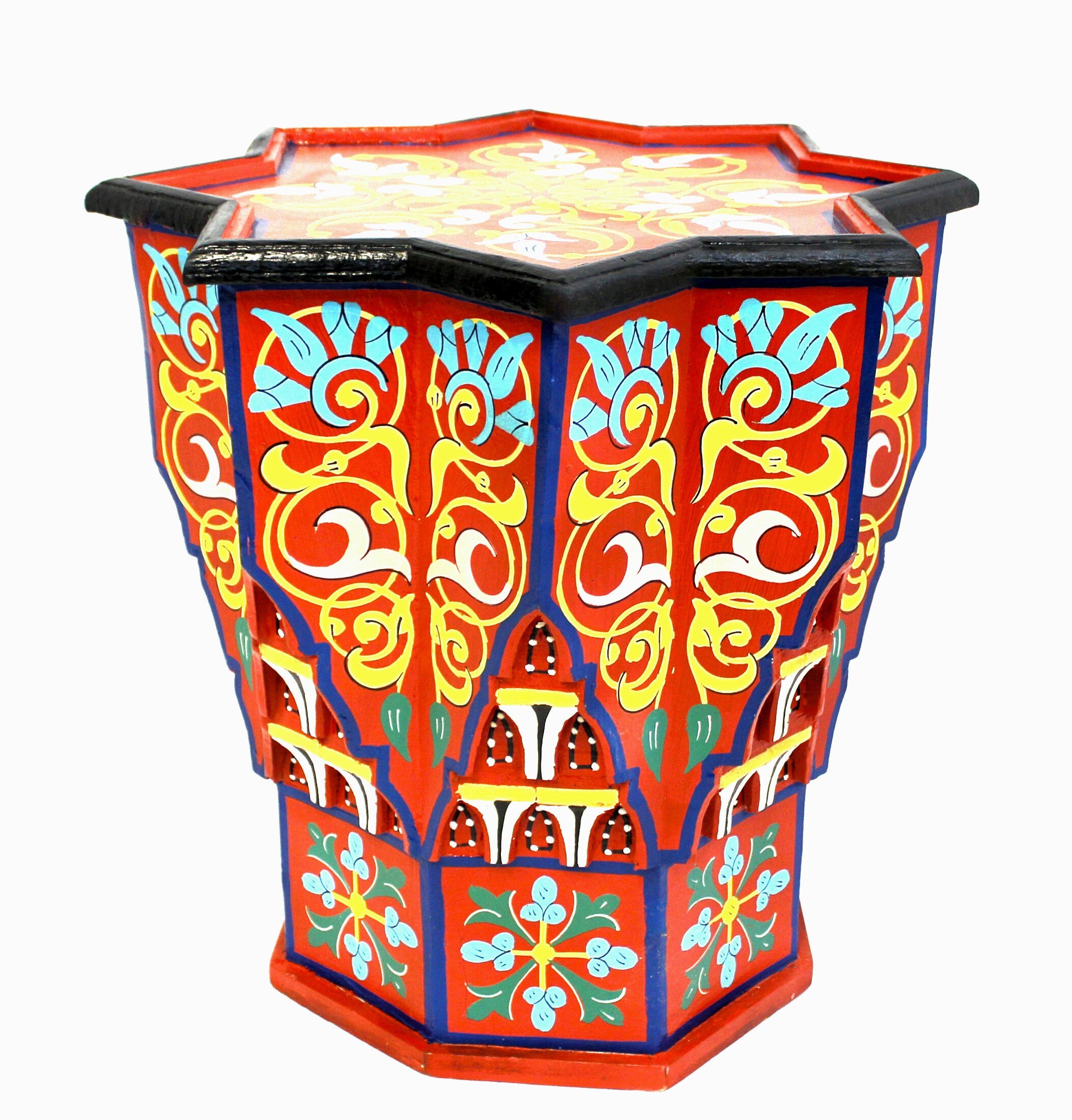 This is a beautiful authentic piece. Hand-crafted in Morocco, using fine quality materials and incredible imagination of artisans. The table is hand-painted. It's made in the shape of the eight-point star, a symbol of life in traditional Moorish designs. It's a perfect side table that will add a special charm to your room and put a warm smile on your face.