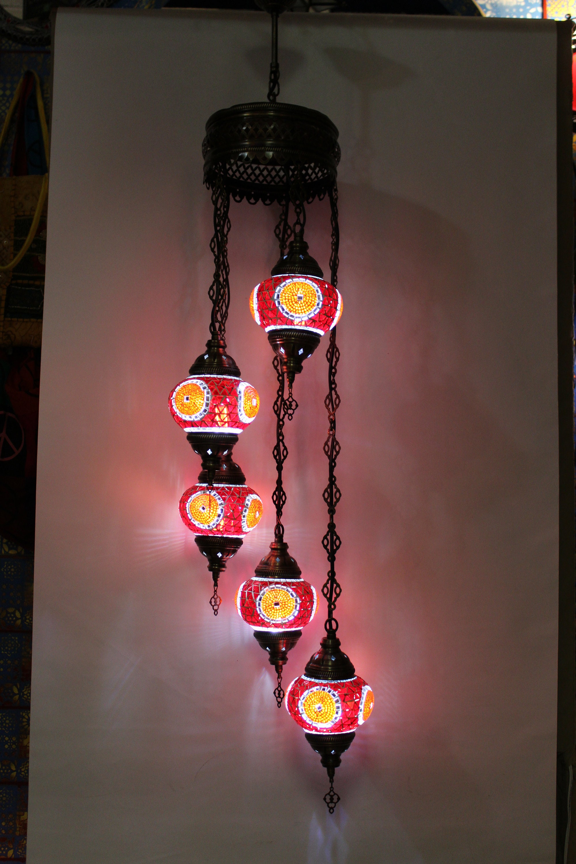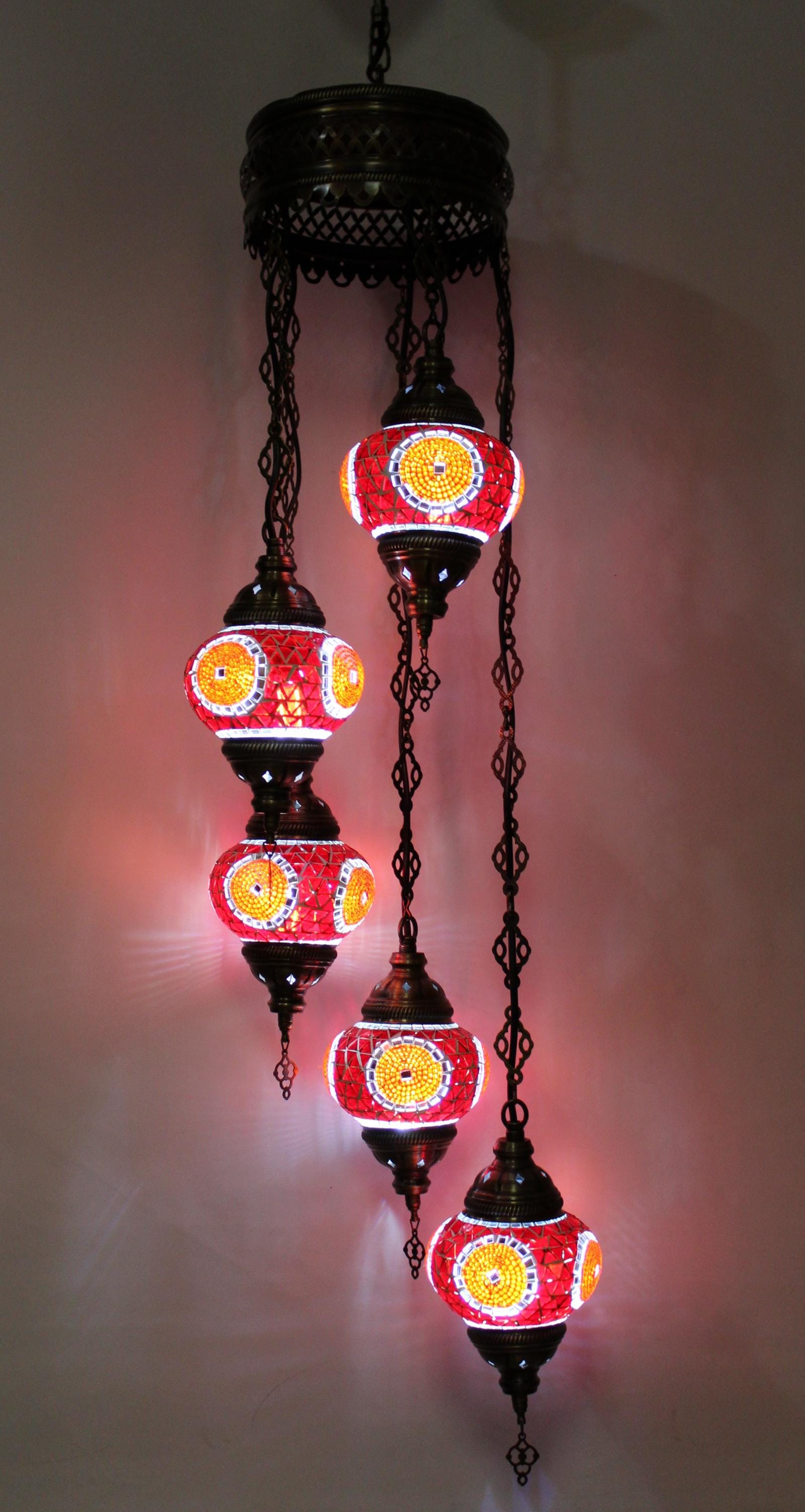 Mosaic Ceiling Lamp Spiral of 5 Globes Red